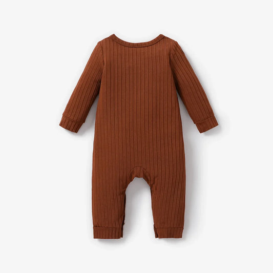 Ribbed Long-sleeve Jumpsuit with Pocket
