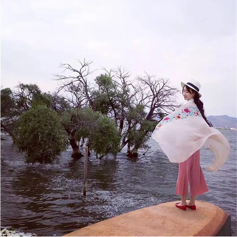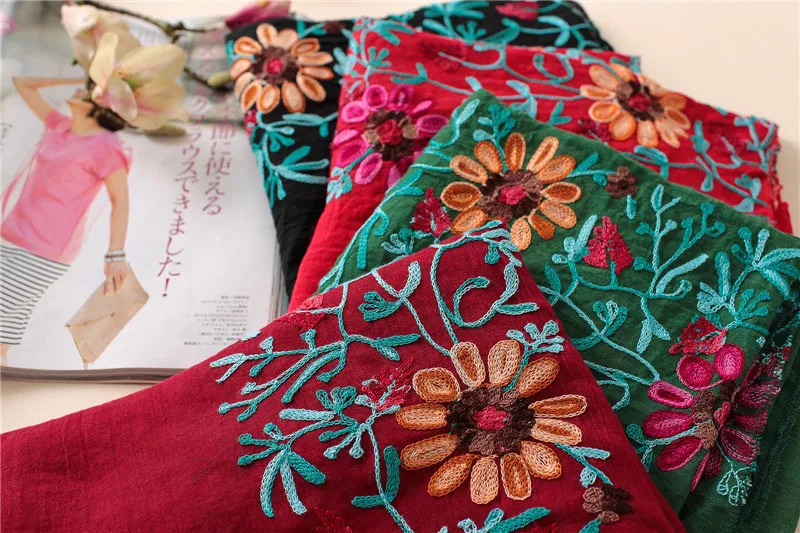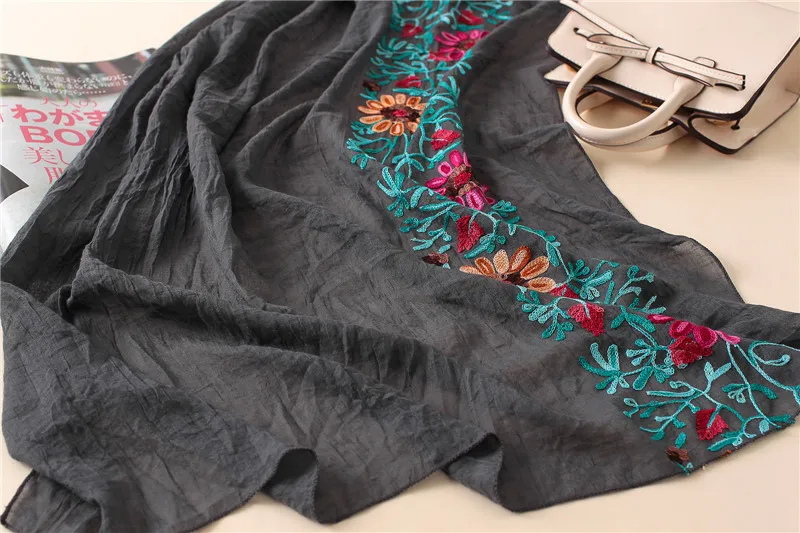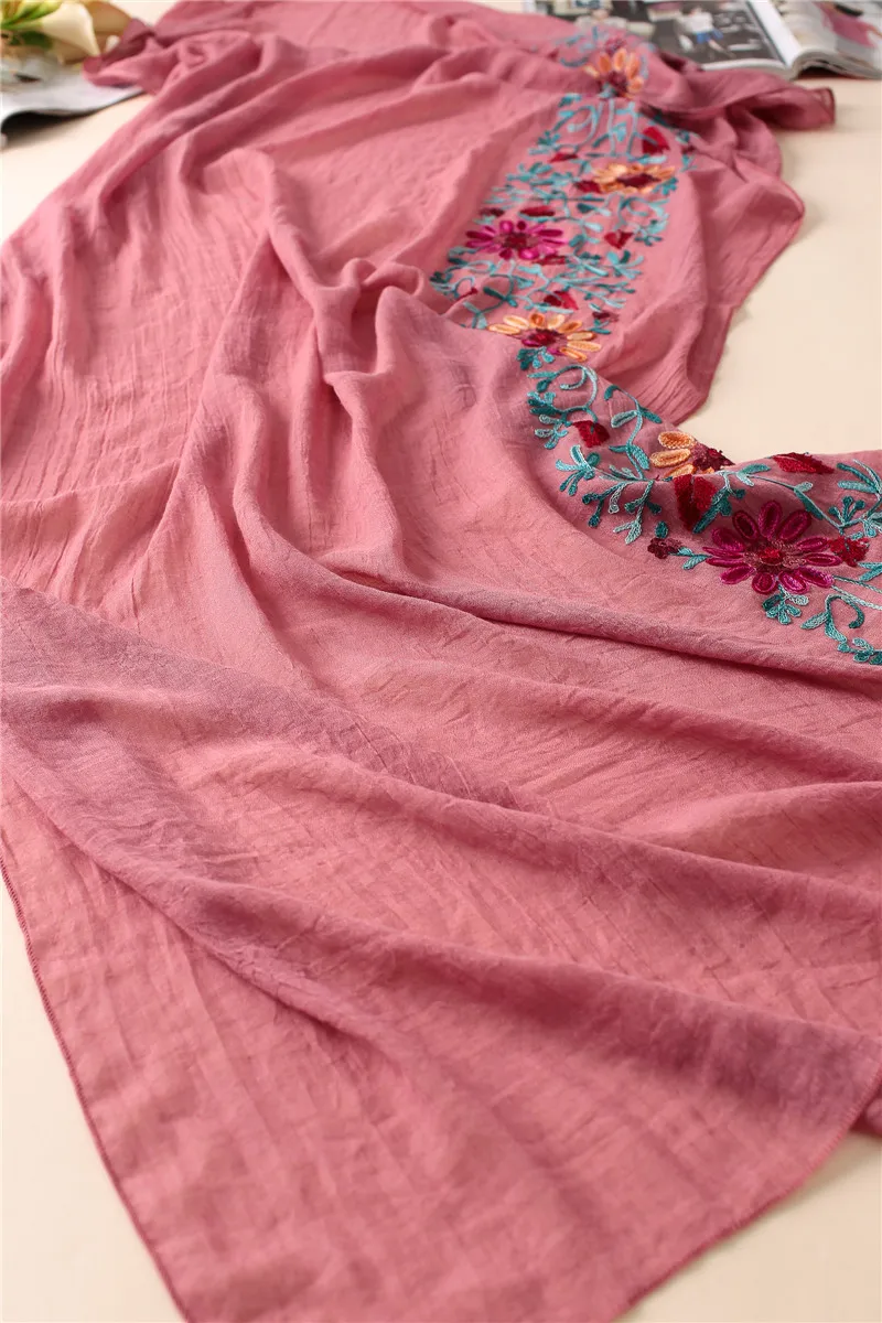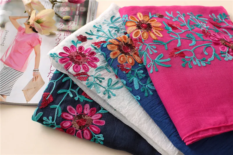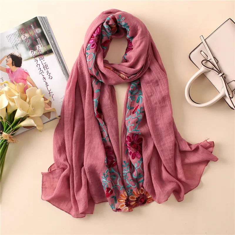 2023 Plain Embroider Floral Viscose Shawl Scarf From Indian Bandana Print Cotton Scarves and Wraps Soft Foulard Muslim Hijab Cap