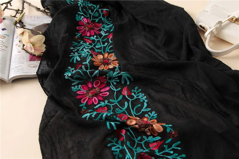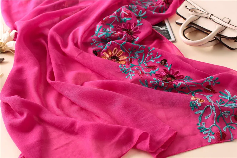 Pattern Type: Floral Viscose Embroidered Scarf